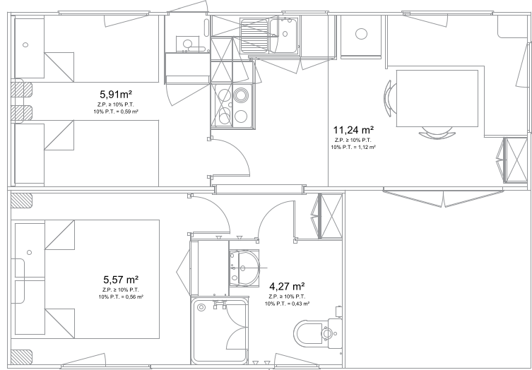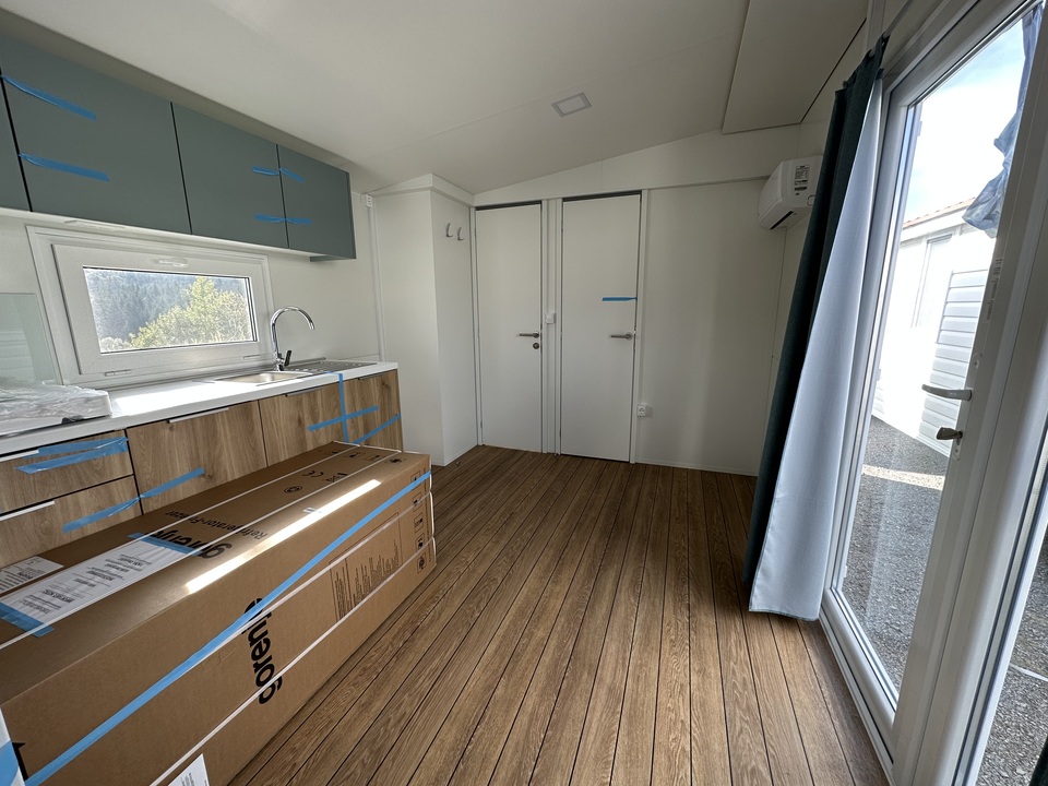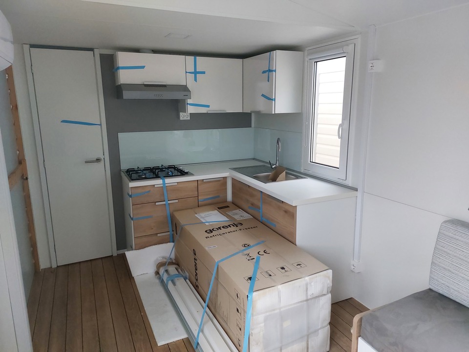 Auf dem Campingplatz Dvorina Srima – Vodice stehen zwei Mobilheimmodelle zum Kauf zur Verfügung, insgesamt also 4 private Mobilheime: