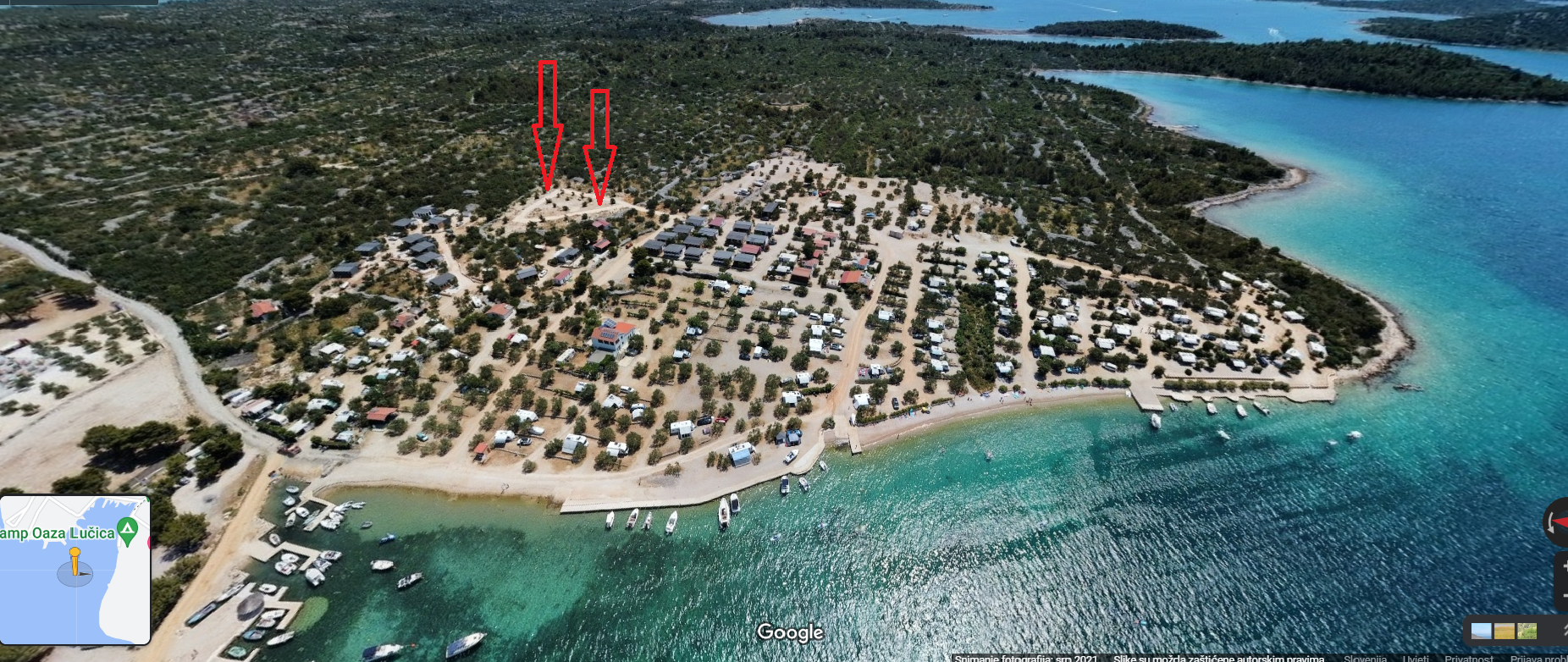 oddajte povpraševanjeKamp Oaza Lućica leži v zalivu Lučica, ki je od kraja Drage pri Pakoštanih oddaljen 2 km v smeri Šibenika oz. od Biograda na moru 13 km. Lokacija kampa je med najboljšimi, saj so parcele urejene na skrajno levem delu zaliva, tako da ima pogled tudi na odprto morje. V zaliv Lućica Drage radi prihajajo tudi surfarji, saj na tem delu pogosto pihajo primerni vetrovi za deskanje. Plaža pred kampom je prodnata, lokacija mobilnih hišic pa je 150 m od morja. Kamp ima vso potrebno infrastukturo in legalno urejen status.